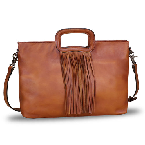 Genuine Leather Purses and Handbags for Women Handmade Tassel Bag Top Handle Vintage Leather Shoulder Bag Satchel Purse